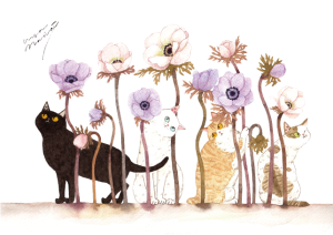 Expresses warm worlds using watercolors. After rescuing a stray cat in 2014, she became fascinated by the beauty of cats’ behavior and ways of expressing themselves, and has been including them in lots of her works ever since. She is currently based in Kyoto.