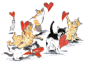 An illustrator who lives in Osaka. She creates works based on the theme of “the lives of cats kept entirely indoors.” Since 2019, she has also been featuring “sakura neko” cats with a V-shaped notch in one ear in her art, in order to spread awareness of TNR and rescued cats.