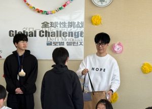 写真(右):一人ひとりにフォーマル服をプレゼントする様子